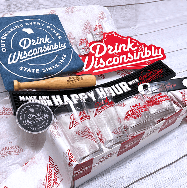 Your basement bar is on its way to the next level. Figuratively, of course. Our "Basement Bar" Gift Box contains everything necessary to stock your watering hole with the goodness and cheer of your favorite Wisconsin tavern.